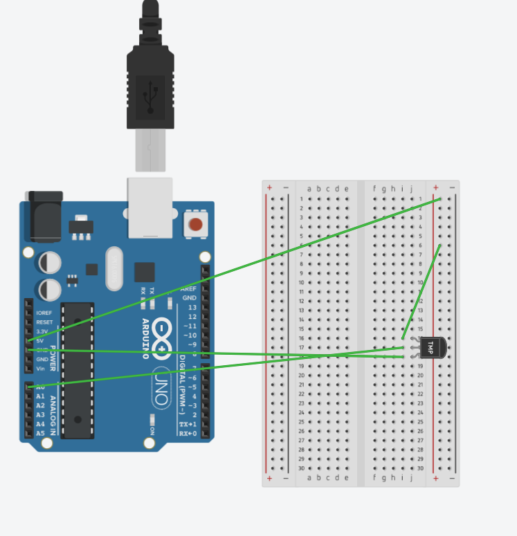 Katse temperatuuri mõõtmiseks temperatuurianduri abil.