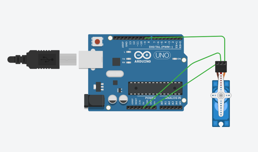 mootor.attach(9); // Ühendame mootori juhtimise digitaalpordi 9 külge. See peab olema PWM-toega väljund.