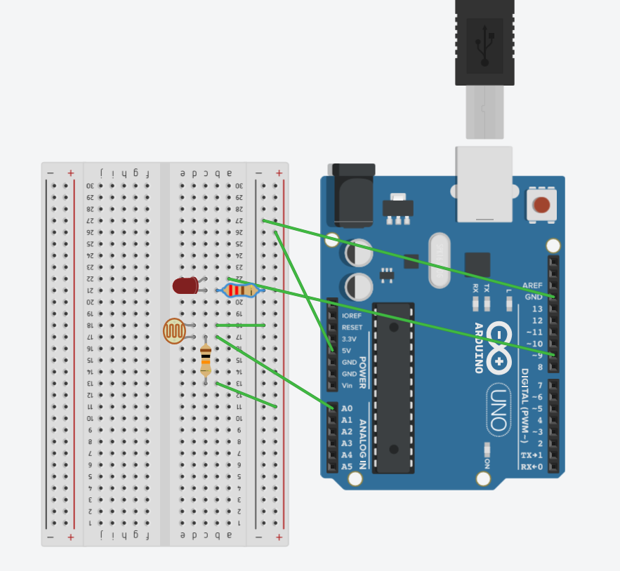 analogWrite()muudab LED-i heledust vastavalt loetud väärtusele. Kui valgus on madal, LED põleb rohkem; kui valgus on kõrge, LED kustub. - ManualTune() ja AutoTune(): Need funktsioonid reguleerivad valgust, et muuta LED-i heledus sõltuvalt valguse tugevusest. ManualTune määrab kindlad piirid, et pimedas LED põleb tugevamalt, ja AutoTune jälgib valgust, et hoida heledus optimaalses vahemikus.