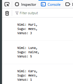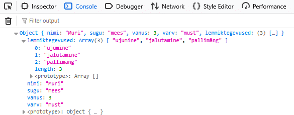 { nimi: "Muri", sugu: "mees", vanus: 3 },